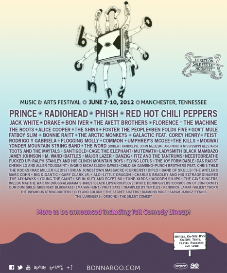Possibly a rumor/fake, but this potential Bonnaroo 2012 line-up looks way better than Coachella, if you ask me. Well, RHCP kinda ruins it, but Ben Folds Five reunion show more than makes up for the Chili Peppers…